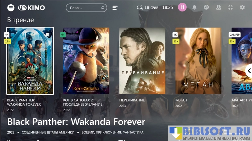 - Большой выбор контента: Приложение Vokino предоставляет доступ к огромному количеству фильмов, сериалов, мультфильмов и другого видео. Список доступных контентов постоянно обновляется, так что пользователи всегда могут найти что-то новое для просмотра.