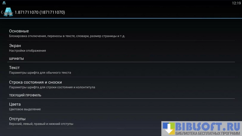 - настройки для дневного и ночного чтения с изменением цвета, шрифта, фоновой картинки, размытия текста (в общей сложности можно настроить до восьми профилей);