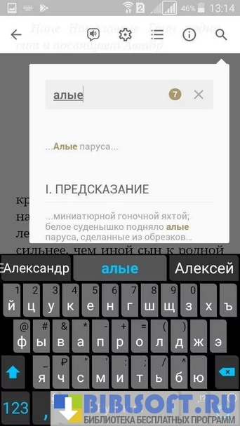 - Быстрый поиск книг на Android и всех синхронизированных с ним устройствах;