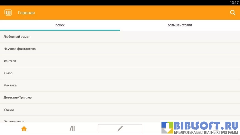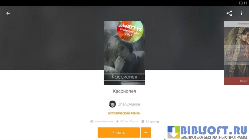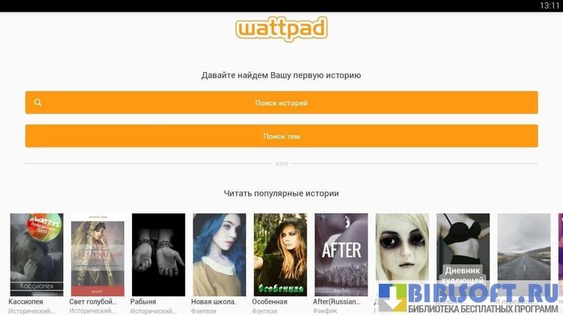 - Закачка файлов не требуется — книги нужно искать через поиск и сразу открывать в Wattpad.