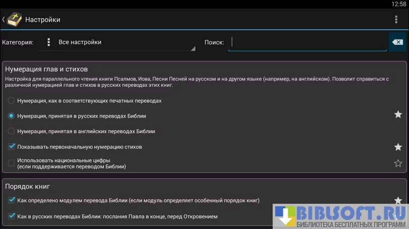 - табло соответствия "русской" и "стандартной" нумерации в книгах, которое помогает одновременно читать тексты Библии на двух языках;