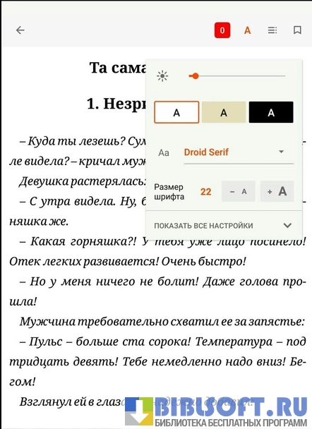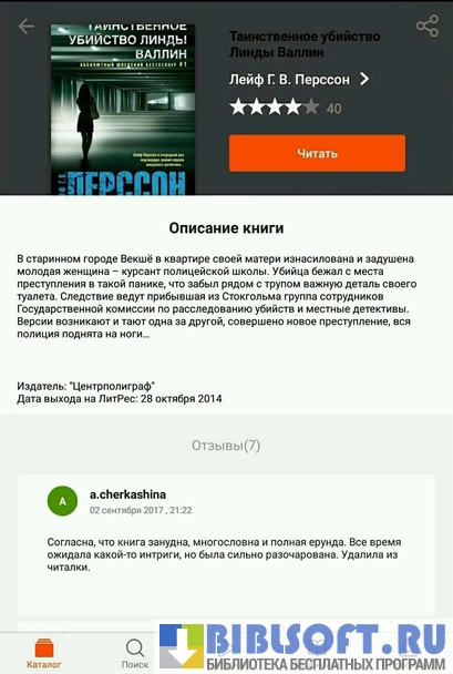 Литрес (Читай бесплатно) – симбиоз виртуальной читалки и агрегатора литературных произведений для Android-устройств. Позволяет находить интересующие книги, скачивать их и читать, прямо из интерфейса – в один клик.