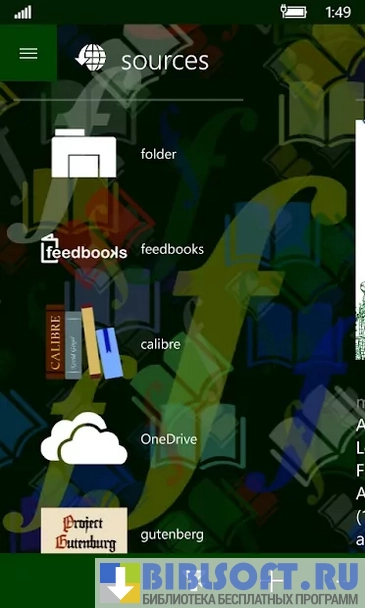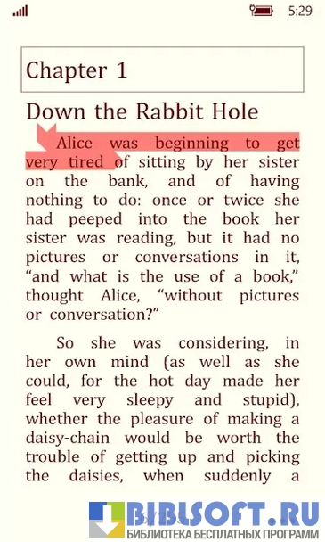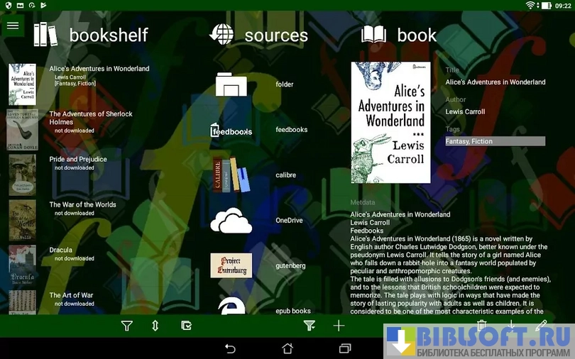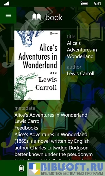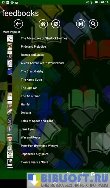 - Встроенный каталог литературы, находящейся в общественном достоянии. Пользователям доступно много классических книг. Если представленного ассортимента недостаточно, можно читать собственные книги из памяти мобильного устройства.