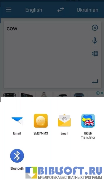 - Возможность расшарить перевод через, практически, любое коммуникационное приложение.