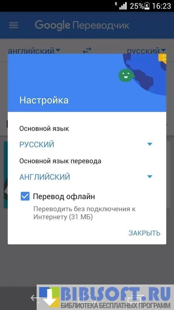- Выберите «Перевести» в автономном режиме, чтобы использовать офлайн-службу «Переводчик Google». Для этого на устройстве потребуется 29 МБ свободного места.