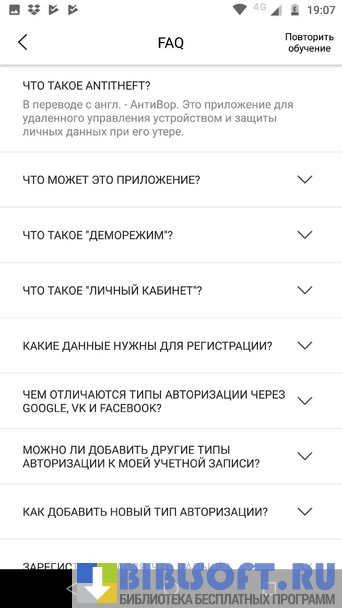 - Сканирует и протоколирует производимые с устройством действия, переходит в «режим украденного аппарата» при подозрении на кражу или потерю (неправильный ввод графического ключа/кода разблокировки, длительное нахождение в выключенном состоянии, сброс настроек системы до «заводских» и т.д.);