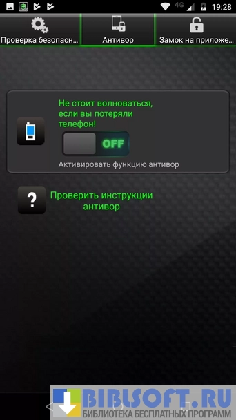 Приложение проверяет все программы, установленные на смартфоне или планшете и оценивает их по степени риска (низкий, средний или высокий). Можно отметить программу как безопасную или удалить ее. Есть функция оповещения по SMS о замене сим-карты. Указав безопасный номер телефона, позднее можно использовать его для удаления данных, блокировки или определения местоположения устройства.