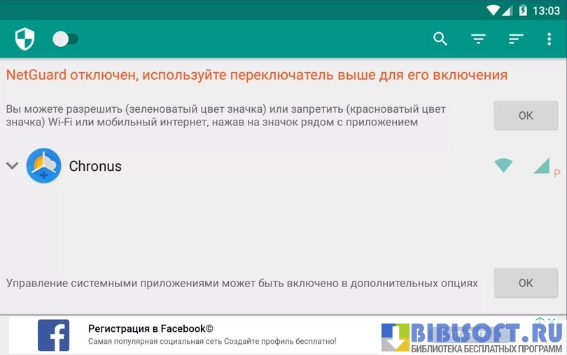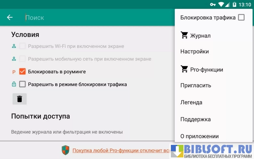 - Дает возможность разрешит или запретить доступ к сети любого приложения на устройстве;
