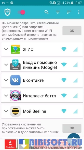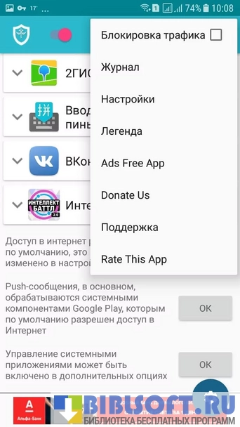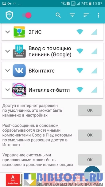 - Небольшой прирост общей скорости интернет-соединения, экономия лимитированного интернета и заряда батареи устройства, за счет блокировки отправки/приема трафика.