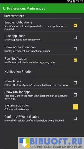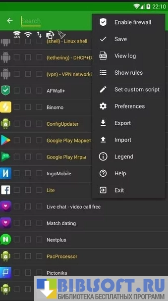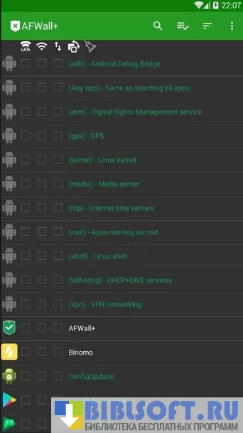 AFWall+ - приложение с расширенным функционалом, позволяющее управлять брандмауэром Android устройства. Ограничивайте доступ сторонних и встроенных приложений к беспроводной сети. Контролируйте количество трафика, проходящего через локальные сети. Экспортируйте свои настройки на внешний накопитель и получайте к ним доступ на любом устройстве.