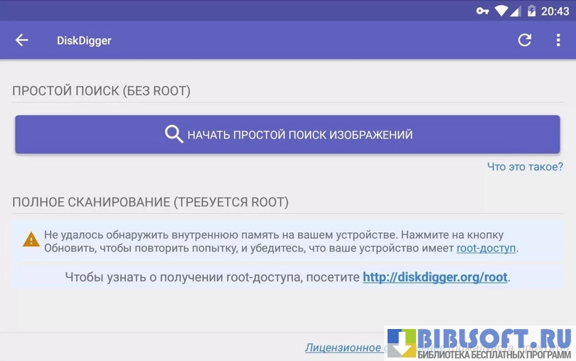 - при отсутствии ROOT-доступа проводится только ограниченное сканирование (приложение ищет миниатюры и кэш).
