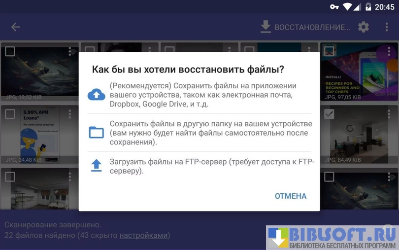 - отправка восстановленных файлов по электронной почте или в облачное хранилище;