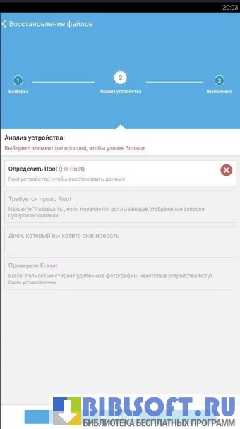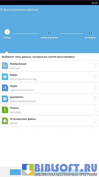 В главном окне приложения отображаются все функции. После выбора нужной опции, начинается сканирование. Продолжительность поиска информации обусловлена объемом памяти устройства. После завершения процесса поиска появится уведомление и список всех найденных файлов. Необходимо их просмотреть, отметить нужные и выбрать папку для сохранения.