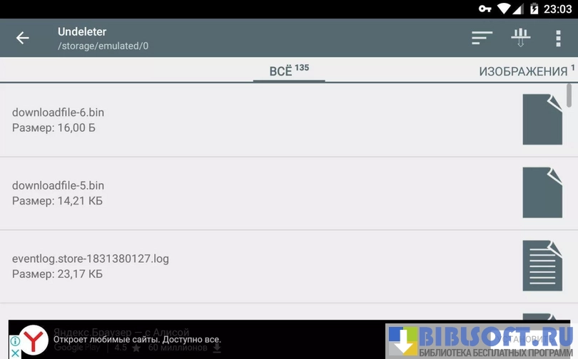 Undeleter - Восстанови Файлы – сервисная утилита, возобновляющая цифровую структуру удаленный файлов для Android устройств. Может сканировать файловую систему и портативные носители информации, подключенные к аппарату. Идентифицирует поврежденные информационные блоки хранимых файлов и «цифровые хвосты» удаленных.