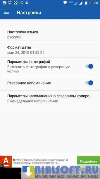 - Автоматически отправляет «свежие» бэкап-файлы в «облако» Firebase при обнаружении интернет-подключения;