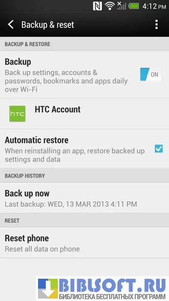 Особенности HTC Backup