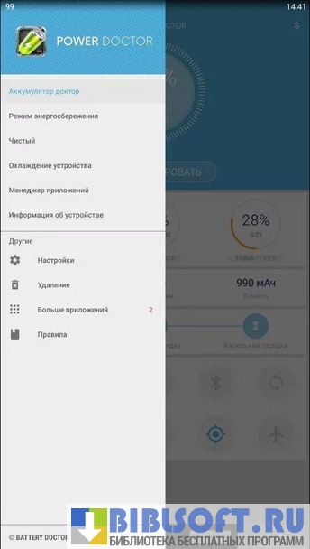 Dr. Battery - это приложение позволит вам улучшить работу аккумулятора на вашем Android устройстве. Увеличение времени автономной работы, ускорение процесса зарядка аппарата и контроль температуры батареи - это позволит аккумулятору прожить дольше. Приложение положительно сказывается не только на аккумуляторе, но и на оперативной памяти смартфона.
