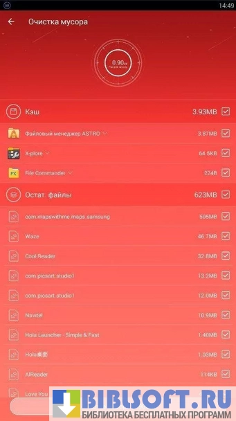- «Очистка мусора» проверяет память устройства и чистит от ненужных файлов.