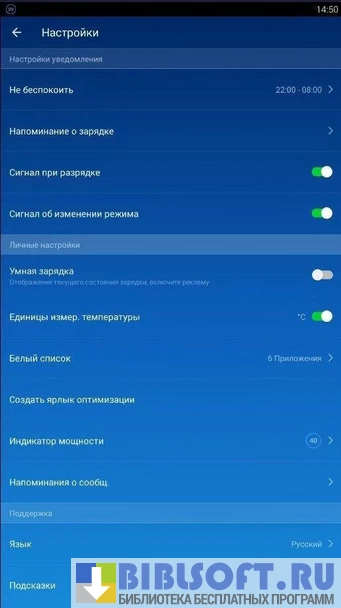 - приложение отображает информацию о вашей батарее, напряжение, вид аккумулятора, примерное время работы;
