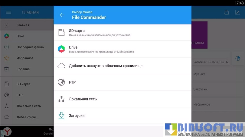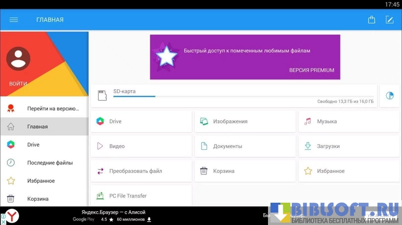- вход в облачные хранилища Google Drive, Microsoft OneDrive и DropBox не выходя из приложения;
