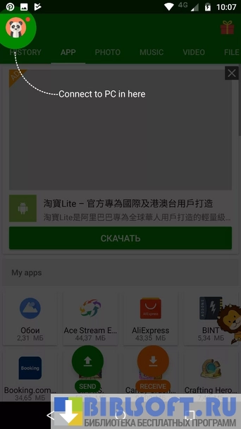 - передача и получение любых файлов, даже приложений;