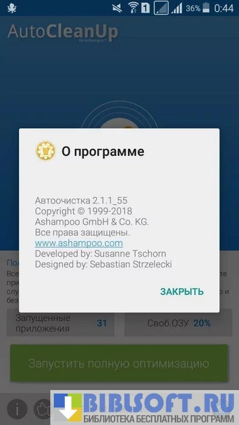 - Запуск полной оптимизации (освобождает дополнительное ОЗУ, выключает фоновые приложения);