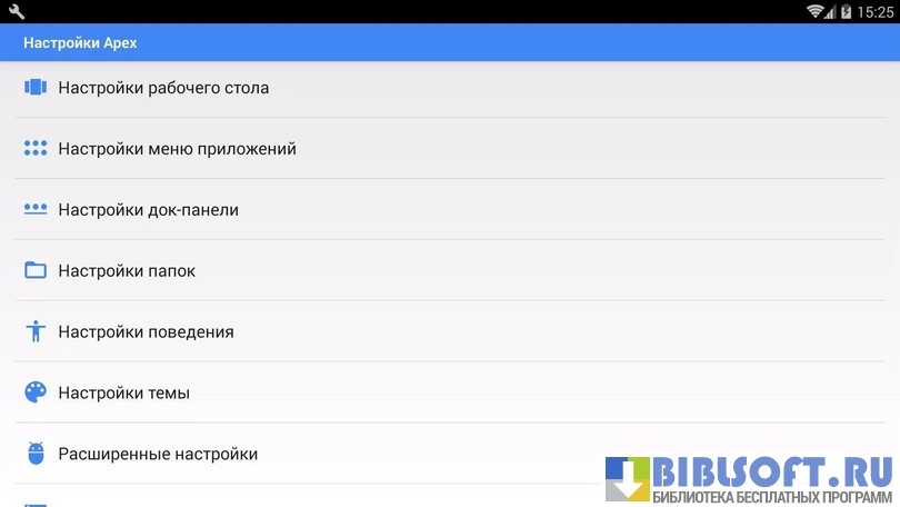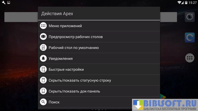 Apex Launcher - программа для изменения интерфейса устройства и персонализации рабочего стола; условно-бесплатная визуальная оболочка, включающая в себя ряд дополнительных функций для работы с виджетами, ярлыками, иконками приложений и списками действий.