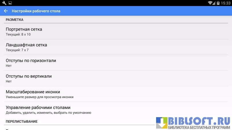 - Меню настроек позволяет изменять количество рабочих столов, редактировать нижний бар, задавать жесты и действия, адаптировать лаунчер для максимально удобной работы с устройством.