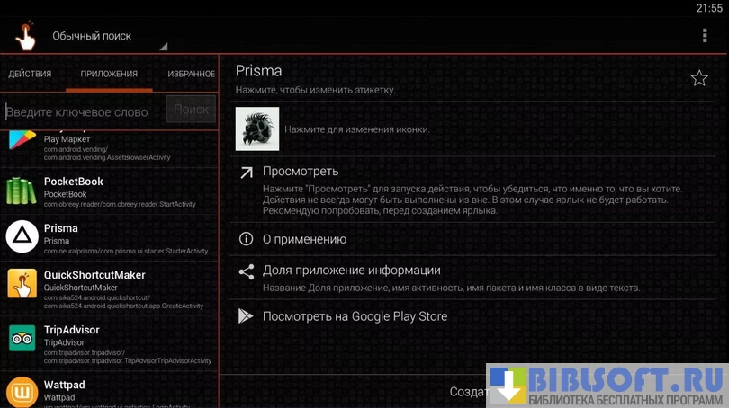 QuickShortcutMaker - приложение для создания и редактирования ярлыков от программ для Android. Пользуйтесь ярлыками для использования любых функций, которые требуют проведения целого ряда действий. Используйте детализированную систему поиска по заданным категориям.