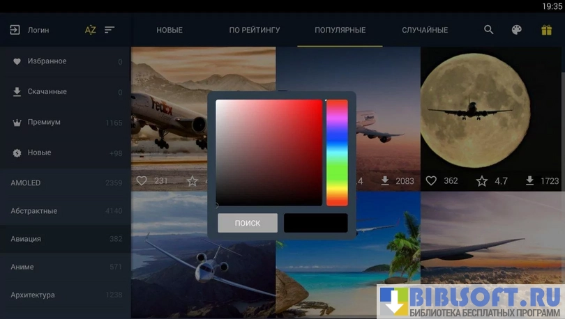 - поисковая система, позволяющая находить обои с желаемым цветом, названием или тегом;