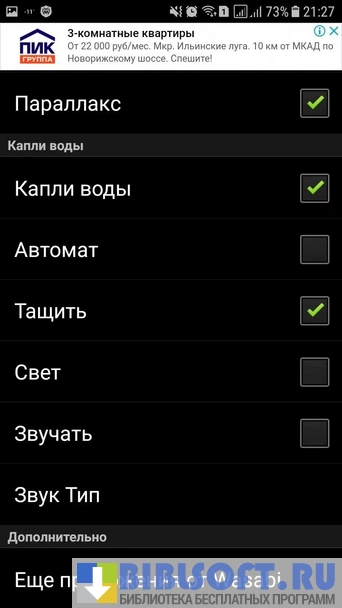 - Ассоциирует используемые обои с выбранными визуальными эффектами (Волны воды, мерцания, легкая дымка и т.д.), корректирует способ отображения обоев соответствующим образом;