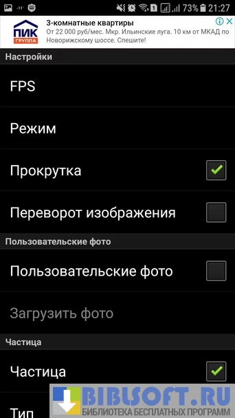- Несколько предустановленных графических эффектов для используемых обоев;