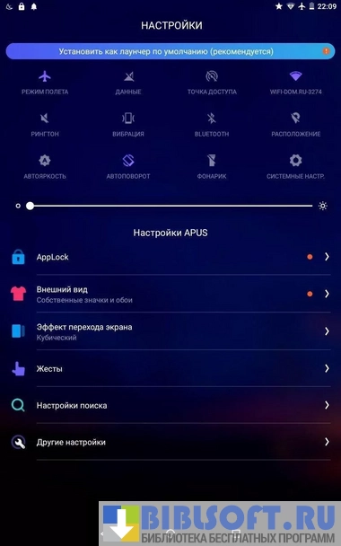 Функционал APUS лаунчер