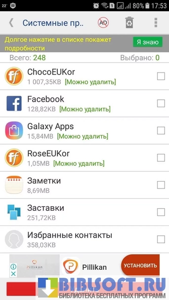 - возможность одновременного удаления нескольких приложений;