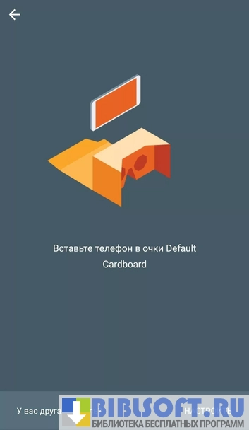 Cardboard - экспериментальное приложение-симулятор виртуальной реальности для Android. Предусмотрено использование шлема, который можно купить или сделать самостоятельно из картона, линз и магнита. Программа считывает данные с камеры смартфона, а затем переносит пользователя в виртуальный мир. Приложение разделяет изображение на стереопару и реагирует на движения головы и изменения магнитного поля. Возможно стать героем любимого фильма, игры, музыкального клипа, посетить удивительные места или захватывающие аттракционы. Используйте пиктограммы для навигации и перемещения. Есть режимы медленного, быстрого и очень быстрого передвижения, ходьбы вперед и назад.