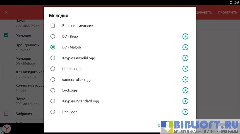 - Программа позволяет выставить свою мелодию, на каждый отрывок времени;