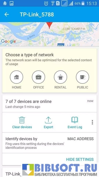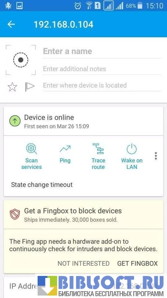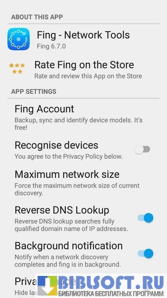 Fing - Network Tools – универсальное Android приложение для исследования параметров сети. Работает с беспроводными сетями. Работает очень быстро и сразу после запуска. Помогает выявить вторжения, оценить безопасность сети и устранить неполадки.