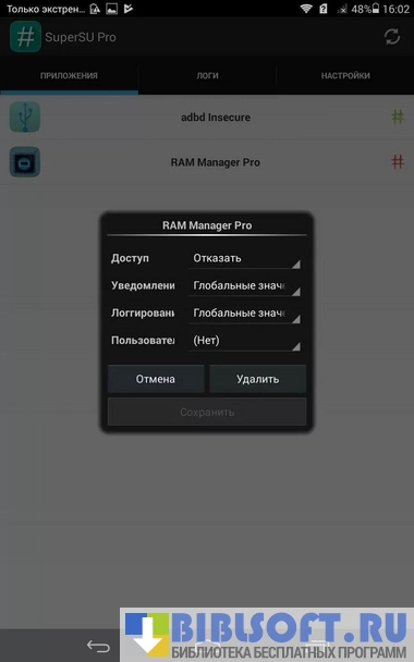 SuperSU – сервисная административная утилита для Android устройств, позволяющая осуществлять тонкую отладку установленных приложений без непосредственного изменения их программного кода.