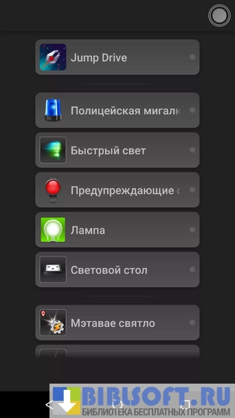 Если устройство не оборудовано вспышкой, приложение все равно будет работать в режиме использования экрана для освещения. Поддерживается несколько режимов – цветная подсветка, полицейский маяк, стробоскоп и сигнализация. Можно изменять цвет и яркость подсветки экрана.