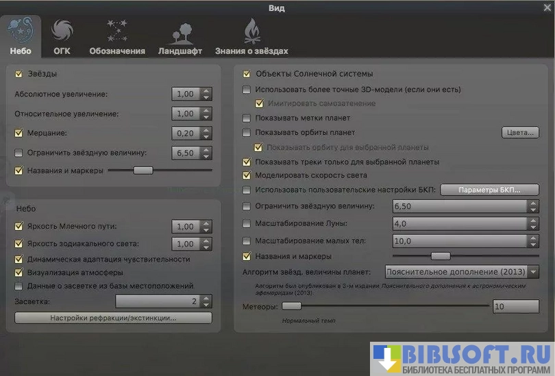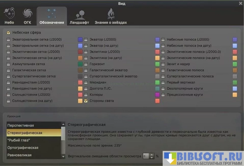 - огромная небесная сфера, включающая в себя более 120 тыс. изначально доступных для просмотра звезд, 600 тыс. звезд доступны для просмотра в изначальном каталоге программы, стоит их только подключить (210 миллионов звезд с дополнительными файлами для приложения);