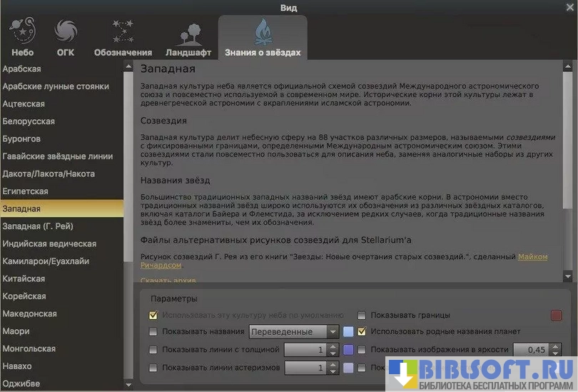 - художественные изображения созвездий в форме мифологических существ, людей из различных мифологий (на выбор доступно несколько: древнеегипетская, современная западная, китайская, арабская, древнегреческая и др.);