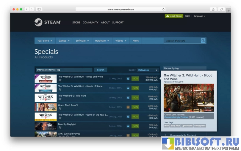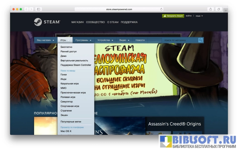 Steam для macOS - клиента сервиса цифрового распространения игр, своеобразной торговой площадки, через которую пользователи могут осуществлять покупку игр, играть в них в сетевом и оффлайн режиме.