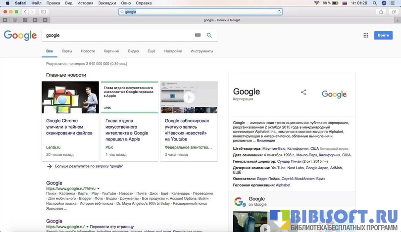 Safari – официальный браузер для macOS от корпорации Apple. Позволяет просматривать веб-ресурсы. Имеет интегрированную систему ускорения прогрузки веб-страниц и экономии заряда батареи устройства. Оснащен передовыми запатентованными функциями безопасности и защиты конфиденциальности от корпорации Apple.