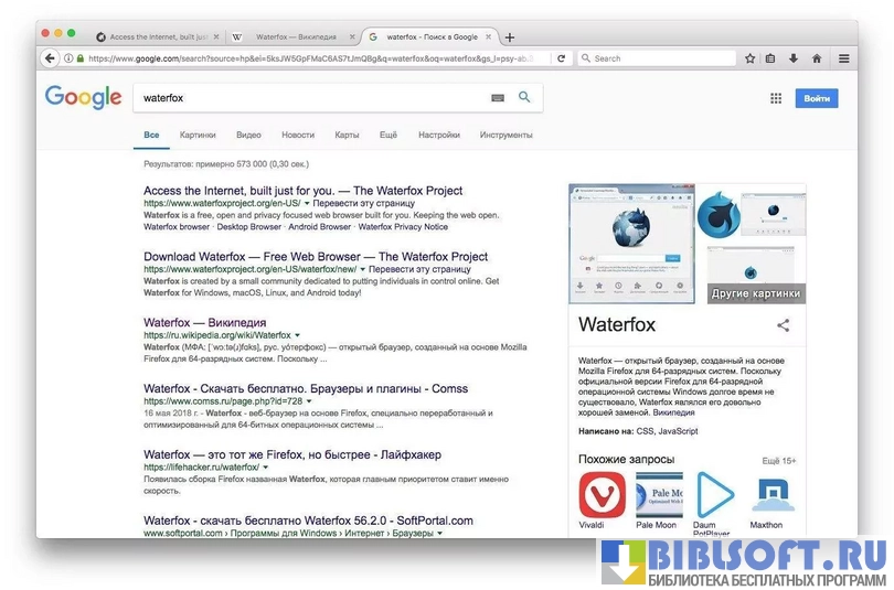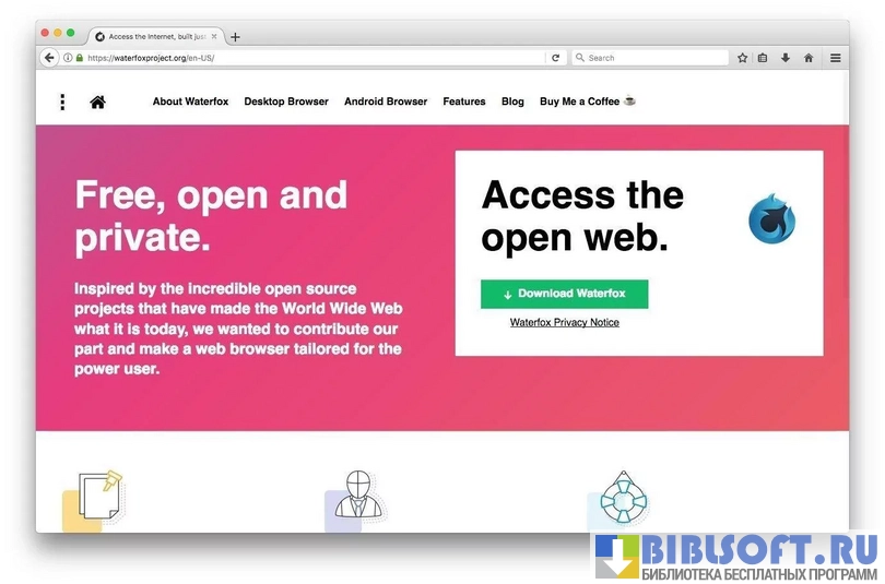 Waterfox для macOS – браузер с открытым исходным кодом. Создан на базе Mozilla Firefox и является его клоном с расширенными возможностями. Основная ориентация разработки заключается в поддержке расширений и высокая скорость работы.