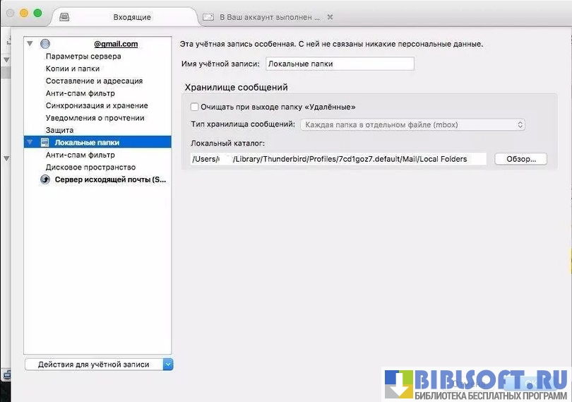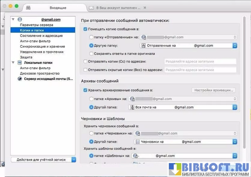 - письма с разных учетных записей можно хранить в одной или отдельных папках;