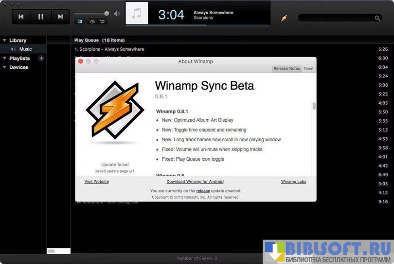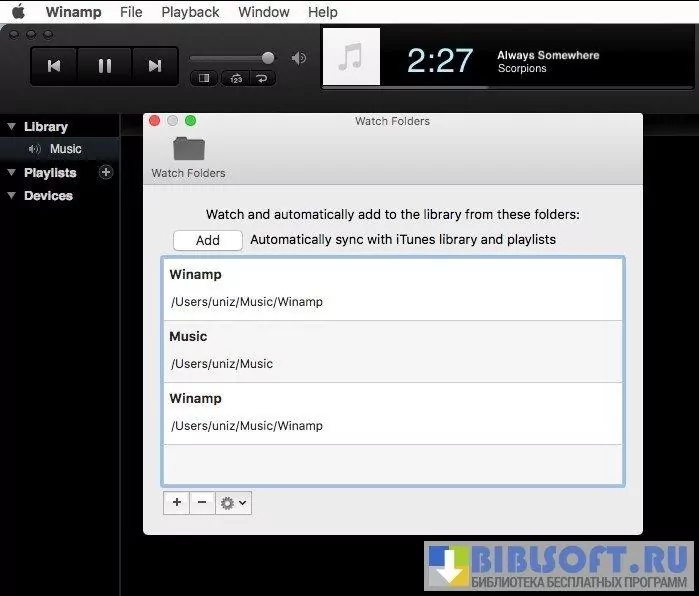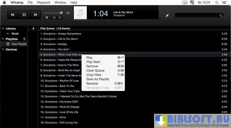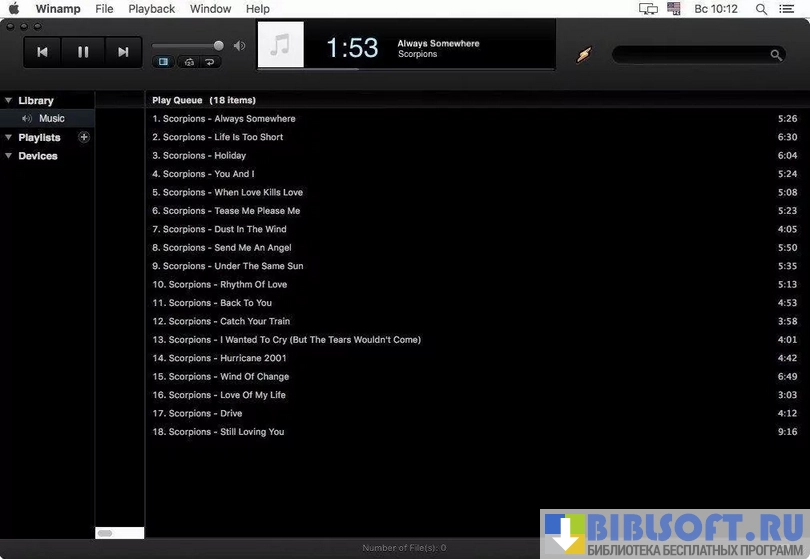Winamp - один из самых популярных инструментов для прослушивания музыки на компьютере под управлением macOS. Поддерживает работу практически со всеми типами файлов аудио/видео формата. Обеспечивает тонкую настройку проигрываемого контента пользователем.