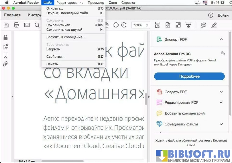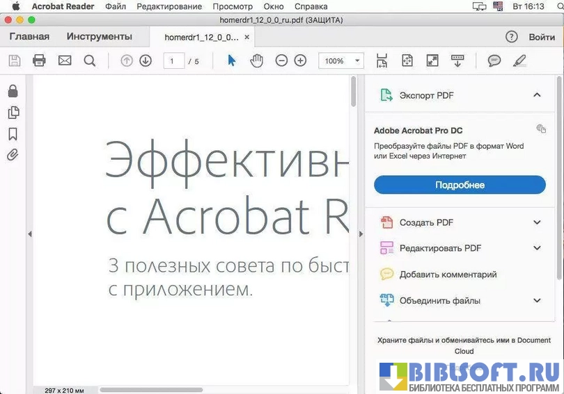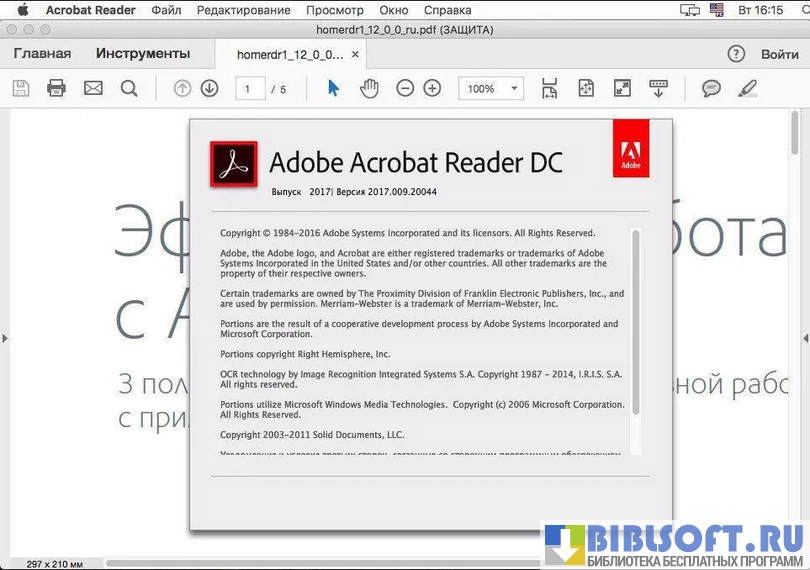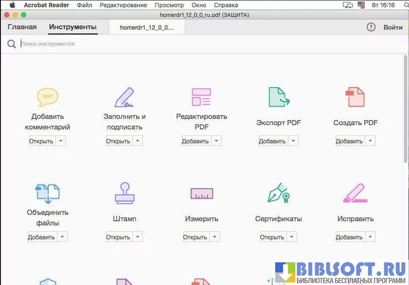 Adobe Acrobat Reader – программа для MacOS, позволяющая читать и распечатывать форматированные текстовые файлы pdf.