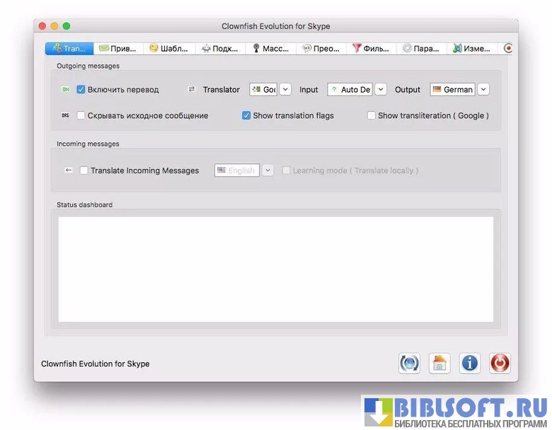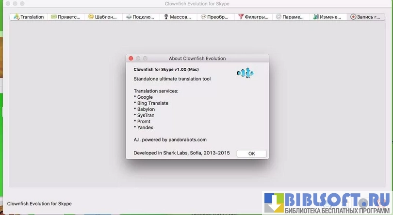 Clownfish для Skype – macOS инструмент для автоматического перевода в программе Skype. Утилита переводит текст непосредственно во время переписки и выводит результат в окно диалога.