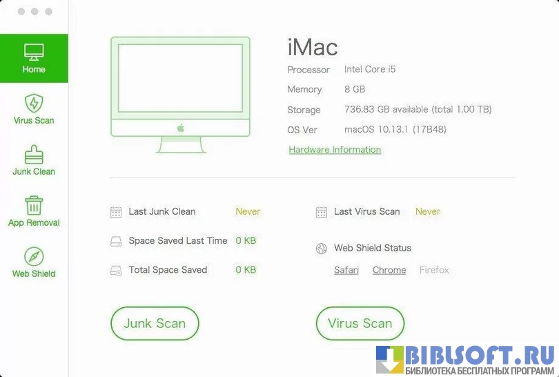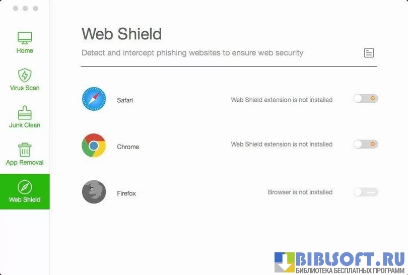 Программа также умеет очищать компьютер от лишних файлов и неиспользуемых программ, тем самым делая работу системы более быстрой. Модуль веб-защиты можно использовать с браузерами Firefox, Google Chrome и Safari.