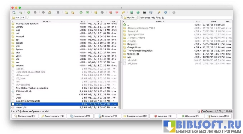 muCommander – кроссплатформенное приложение для удобной и легкой работы с системой файлов на компьютерах от Apple. Позволяет оперативно и просто переименовывать, копировать, удалять и перемещать файлы. Доступен встроенный архиватор, опция подсчета контрольной суммы, протокол SMTP, структура каталогов для каждой панели и т.д.